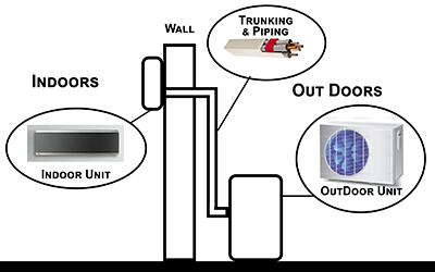 Standard installation includes 2 meters of piping from indoor unit to external unit and 15meter of cabling with standard circuit breaker and local  and lockable isolation point at outdoor unit